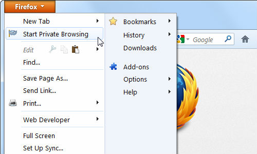 फॉयरफॉक्स में प्राइवेट ब्राउजिंग ऑन करने के लिए
