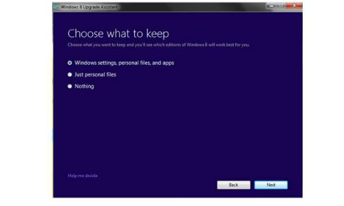 अगर आप विंडो 8 इंस्टाल करना चाहते हैं ऊपर दिए गए ऑप्शन में से एक ऑप्शन चुने जैसे पहले ऑप्शन का मतलब है क्या आप अपने विंडो 7 पुरानी सेटिंग रखना चाहते हैं दसरा मैसेज है क्या आप केवल पर्सनल सेटिंग सेव करना चाहते हैं और तीसरे मैसेज का मतलब है विंडो 7 में की कोई भी एप्लीकेशन या सेटिंग नहीं चाहते। तीनों में से एक ऑप्शन चुनने के बाद नीचे दी गई नेक्ट बटन पर क्लिक करें जिसमें आपको विंडो 8 आर्डर करना पड़ेगा। हम आपको बता दें विंडो 8 प्रो अपग्रेड करने की कीमत 1,999 रुपए है।पढ़ें: कैसे करें अपने कंप्यूटर को साफ