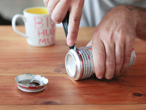कैन काटने के बाद उसे दी गई तस्वीर के हिसाब से साइड से खोल दें।