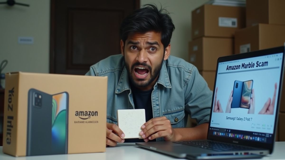यह घटना बेंगलुरु के एक टेक इंजीनियर प्रेमानंद के साथ घटी, जिन्होंने Amazon से Samsung Galaxy Z Fold 7 ऑर्डर किया था, जिसकी कीमत करीब ₹1.87 लाख है। सब कुछ ठीक लग रहा था, प्रीमियम फोन, सील्ड पैकेज, और ऑन-टाइम डिलीवरी। लेकिन जब उन्होंने पैकेट को कैमरे पर रिकॉर्डिंग करते हुए खोला, तो नजारा देखकर होश उड़ गए। डिब्बे के अंदर चमचमाता स्मार्टफोन नहीं, बल्कि एक मार्बल की टाइल रखी हुई थी।