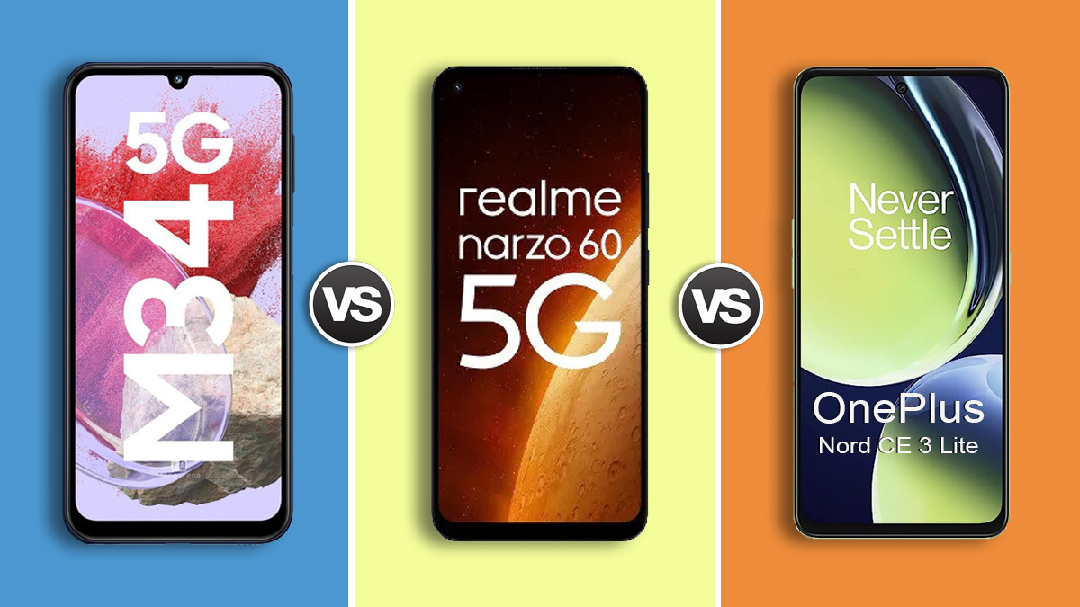 Galaxy M34 5G vs narzo 60 vs Nord CE 3 lite: कीमत