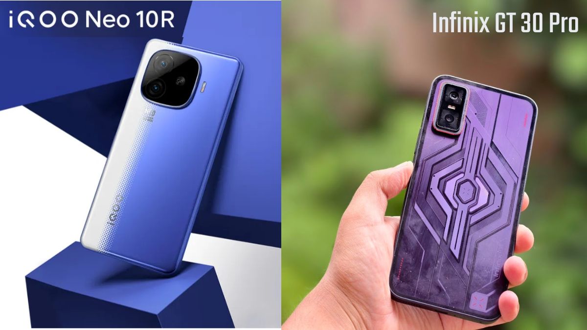 Infinix GT 30 Pro vs iQOO Neo 10R: Infinix ने भारत में Infinix GT 30 Pro को लॉन्च कर दिया है। इस फोन के साथ कंपनी ने कई शानदार फीचर्स पेश किए हैं। इस तरह के फोन स्मार्टफोन मार्केट में गेमिंग और परफॉर्मेंस को लेकर कम्पटीशन लगातार बढ़ते जा रहे हैं। बता दें कि Infinix और iQOO ने अपने लेटेस्ट मिड-रेंज स्मार्टफोन Infinix GT 30 Pro और iQOO Neo 10R लॉन्च किए हैं।