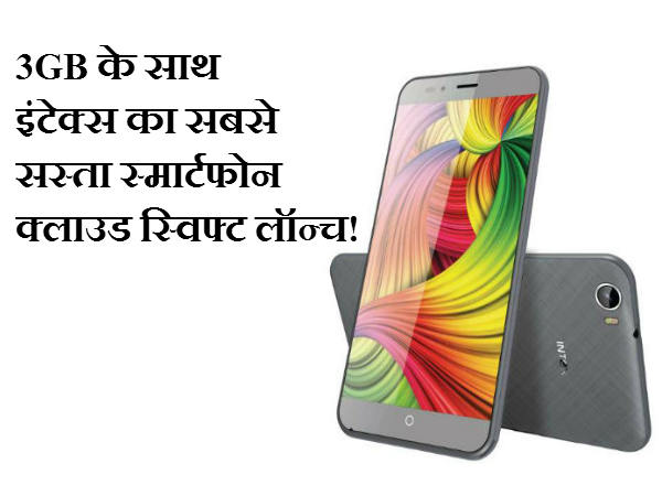 3GB के साथ इंटेक्स का सबसे सस्ता स्मार्टफोन क्लाउड स्विफ्ट लॉन्च