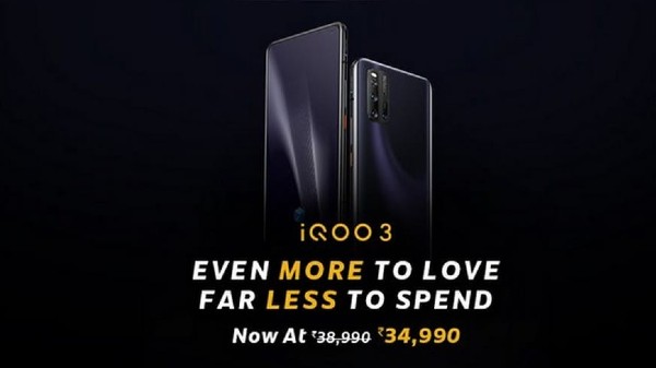 स्मार्टफोन कंपनी आईक्यूओओ ने भारत में अपने 5-जी स्मार्टफोन आईक्यूओओ-3 की कीमत में पहली कटौती की है। यह स्मार्टफोन अब 4,000 रुपये की छूट के बाद 34,990 रुपये (बेस मॉडल) में मिलेगा। इसे 3 अलग-अलग वैरियंट में खरीद सकते हैं ।