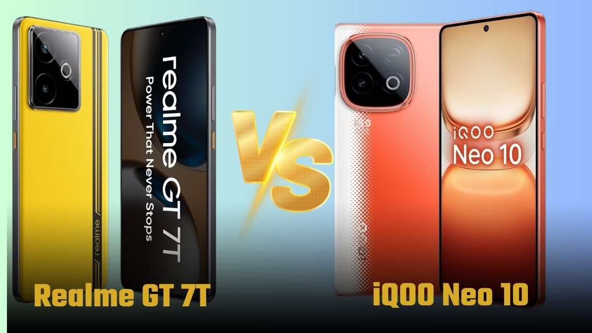 Realme GT 7T vs iQOO Neo 10: रियलमी और iQOO दोनों ही ऐसी स्मार्टफोन कंपनियां हैं, जिनके स्मार्टफोन को लाखों लोगों ने पसंद किया है। हाल ही में दोनों कंपनियों ने अपने नए और मिड-रेंज फोन को लॉन्च किया है। जहां एक तरफ Realme ने Realme GT 7 सीरीज के तहत Realme GT 7T को पेश किया है, वहीं दूसरी तरफ iQOO ने Neo 10 को मार्केट में उतारा है।