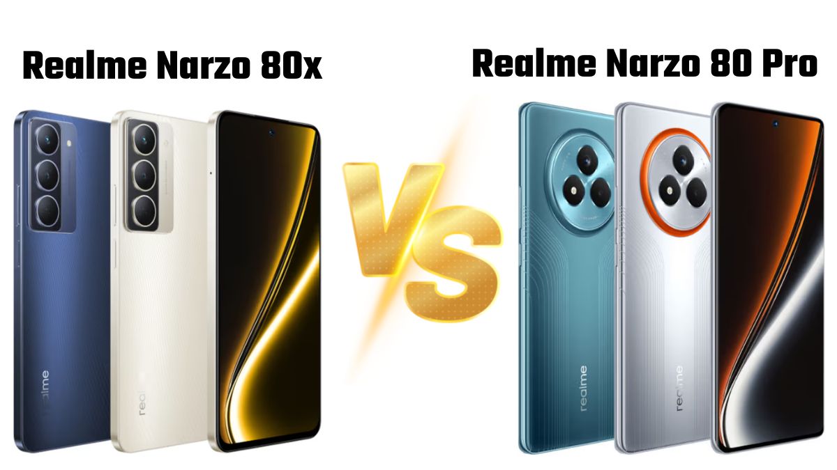 Realme Narzo 80 Pro vs Realme Narzo 80x: Realme ने आज भारतीय मार्केट में अपने लेटेस्ट स्मार्टफोन्स Realme Narzo 80 Pro और Narzo 80x को लॉन्च कर दिया है। ये दोनों स्मार्टफोन्स पिछले साल के Narzo 70 सीरीज के सक्सेसर हैं। हालांकि कंपनी ने इस सीरीज के फोन में नई डिजाइन, बेहतर चिपसेट, बड़ी बैटरी और तेज चार्जिंग की सुविधा दी गई है।