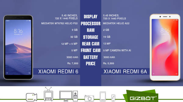 अब इस बार कंपनी ने Xiaomi Redmi 6 सीरीज को भारतीय बाजार में पेश किया है। इस सीरीज के तीन फोन को कंपनी ने लॉन्च किया है। इन फोन में Xiaomi Redmi 6, Xiaomi Redmi 6 और Xiaomi Redmi 6 Pro शामिल हैं। इन तीनों फोन में पहले दो फोन लगभग एक ही रेंज के स्मार्टफोन है। लिहाजा हम आपको अपने इस आर्टिकल में इन दोनों फोन की सभी स्पेसिफिकेशन बता कर तुलना करेंगे कि कौनसा फोन ज्यादा बेहतर है।
