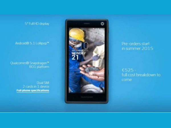 अन्य देशों में यह कब लॉन्च होगा, इसकी कोई जानकारी कंपनी द्वारा अभी नहीं दी गई है। ऑलिवर हेबर्ट (चीफ टेक्नोलॉजी ऑफिसर, फेयरफोन) की माने तो यह कंपनी का दूसरा स्मार्टफोन है जिसे मॉड्यूलर डिजाइन दिया गया है, यानी यूजर्स इसे अपने मनमुताबिक भी शेप दे सकेगें। आपको जानकारी के लिए बता दें कि इसी तरह का मोबाइल गूगल भी तैयार कर रहा है। आरा नामक इस प्रोजेक्ट को गूगल 2016 में लॉन्च कर सकता है।