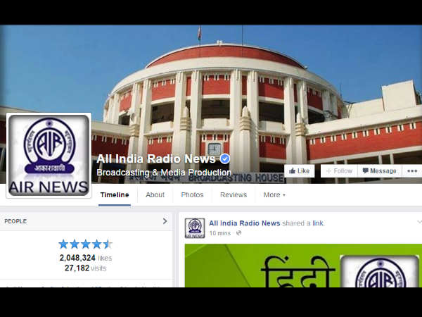 फेसबुक पर आकाशवाणी समाचार के 20 लाख फॉलोवर
