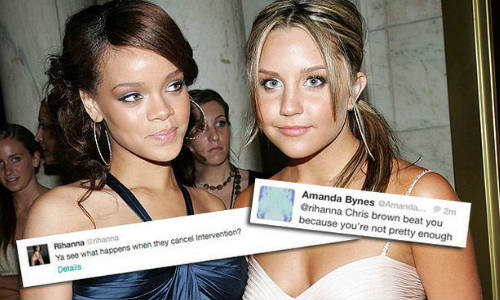 क्रिस ब्राउन ने तुम्हें छोड़ दिया क्योंकि तुम सुंदर नहीं हो। अमांडा ने आगे लिखा, कोई तुमसे प्यार नहीं करता इसलिए तुम हर किसी को फोन करती रहती हो। मैं अपने कुत्ते का नाम रिहाना रखने वाली हूं। रिहाना ने अमांडा के ट्विट के जवाब में लिखा, चलो देखते हैं, जब लोग आपकी जिंदगी में बेवजह हस्तक्षेप बंद कर देंगे, तब क्या होता है।अमांडा ने लिखा, मैं तुम्हारी तरह नहीं हूं, मैं नशा नहीं करती। तुम बिल्कुल भी खूबसूरत नहीं हो और यह तुम भी जानती हो।