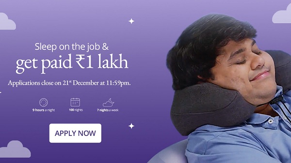 आपके सोने के दौरान आपके शरीर के हर्थ बीट, पल्स रेट जैसी चीजों को मशीन रीड करेगी और आपके सोने का टाइम भी रीड और रिकॉर्ड किया जाएगा। इस तरह से लगातार अगले 100 दिनों तक सोने के बाद आपको एक लाख रुपए जीतने का मौका होगा। अगर आप कंपनी के स्लीप इंटर्नशीप के सभी पैमानों पर ख़रे उतरेंगे तो आपको कंपनी की तरफ से एक लाख रुपए का इनाम दिया जाएगा।