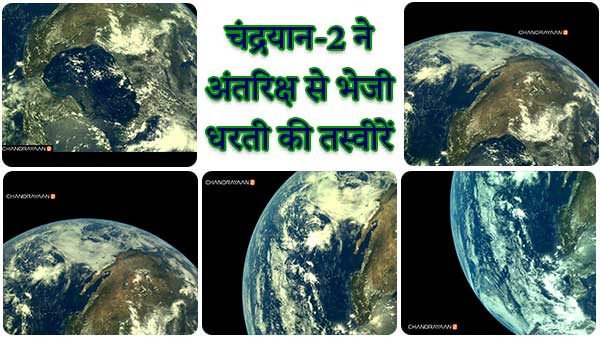 भारतीय अंतरिक्ष अनुसंधान संगठन (ISRO) ने अपने ट्विटर हैंडल पर कुछ तस्वीरे साझा की है जो चंद्रयान-2 से भेजी गई है। चंद्रयान-2 में लगे LI4 कैमरे से धरती की कुछ तस्वीरों को दो दिन पहले क्लिक की गई है और उसे इसरो को भेजा गया। चंद्रयान-2 में लगे LI4 कैमरे ने 3 अगस्त 2019 को 17:34 UT पर इन पिक्चर्स को लिया गया है। इसरो ने जानकारी देते हुए कहा था कि शुक्रवार को दोपहर 3 बजकर 27 मिनट पर चंद्रयान-2 ने चौथी कक्षा में पहुंचने की गतिविधि सफलतापूर्वक पूरा किया है।