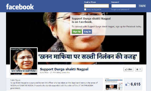 दुर्गा शक्ति नागपाल को सपोर्ट करने के लिए फेसबुक में बनाया गया फैन पेन