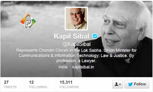 ट्विटर पर बराक ओबामा से लेकर कई देशों के प्रधानमंत्री के एकाउंट हैं, जिसकी मदद से वे अपनी बात लोगों तक आसानी से कह सकते हैं। ट्विटर दुनियां में अभिव्यक्ति का सबसे बड़ा साधन माना जाता है। इसी को देखते हुए क्रेद्रीय कानून मंत्री कपिल सिब्बल @KapilSibal भी ट्विटर पर आ चुके हैं। गुरुवार को उन्होंने अपने एकाउंट से हियर आईएम वन ऑफ यू लेट्स टॉक लिखकर ट्विट किया लेकिन इससे पहले उन्होंने एक बड़ी गलती कर दी जिसकी वजह से ट्विटर पर ही वे हसी का पात्र बन गए।