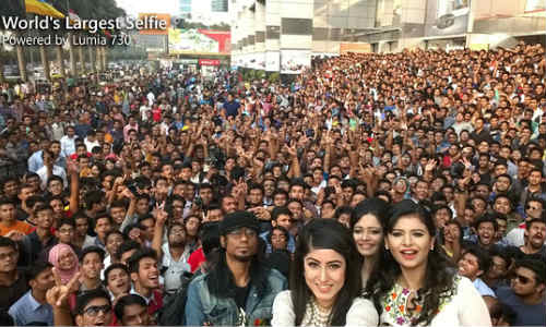 माइक्रोसॉफ्ट के विंडो स्मार्टफोन भले ही एंड्रायड स्मार्टफोन को पीछे करने में कामयाब न हो पाए हो लेकिन माइक्रोसॉफ्ट के खाते में एक नया कीर्तिमान जरूर आ गया है। बांग्लादेश में माइक्रोसॉफ्ट लूमिया स्मार्टफोन से दुनिया की सबसे बड़ी सेल्फी क्लिक की गई है। ये सेल्फी बांग्लादेश की राजधानी ढाका में ली गई है जिसमें करीब 1151 लोग शामिल हैं। सेल्फी को नोकिया के लूमिया 730 स्मार्टफोन से शूट किया गया है। माइक्रोसॉफ्ट ने इस सेल्फी को लूमिया बांग्लादेश के फेसबुक पेज पर पोस्ट किया है।