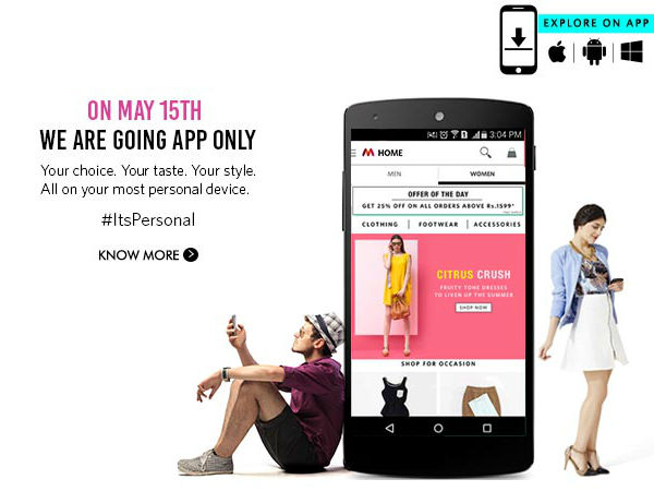 This May 15th, 2015, Myntra is taking the first step towards the future of fashion shopping - we move on from the desktop to being exclusively available on the app.