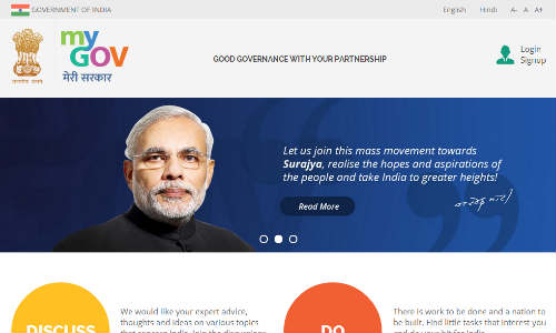 प्रधानमंत्री नरेंद्र मोदी ने शनिवार को एक वेबसाइट लांच की, जिसके जरिए जनता अपने विचार और सुझाव साझा करने के साथ-साथ देश के शासन में भागीदारी कर पाएगी। मोदी ने इस वेबसाइट की शुरुआत पर कहा, "सरकार में जन भागीदारी के बिना लोकतंत्र सफल नहीं हो सकता और यह भागीदारी सिर्फ चुनाव तक सीमित नहीं रहनी चाहिए। यह भागीदारी जनता की आकांक्षाओं और जरूरतों को पूरा करने के लिए होनी चाहिए।