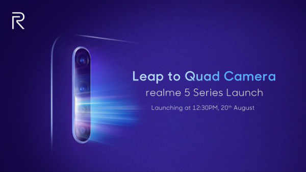 अब कंपनी 20 अगस्त को Realme 5 Series को लॉन्च करने जा रही है। इस सीरीज में कंपनी दो स्मार्टफोन लॉन्च करेगी। इसमें Realme 5 और Realme 5 Pro को लॉन्च किया जाएगा। इन दोनों स्मार्टफोन की तैयारी शुरू हो गई है। कंपनी ने इन नए स्मार्टफोन के बारे में जानकारी देते हुए कहा है कि कंपनी 20 अगस्त को दोपहर 12:30 बजे एक इवेंट में इस स्मार्टफोन सीरीज को लॉन्च करेगी।