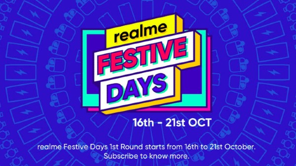Realme Festive Days कंपनी की अनुअल सेल होती है। जिसके लिए कंपनी ने तारीख की घोषणा कर दी है। रियलमी ने अपने ऑफिशियल वेबसाइट पर सेल की तारीख का ऐलान किया। बता दें कि रियलमी के सेल 16 अक्टूबर से लेकर 21 अक्टूबर तक जारी रहेगी।