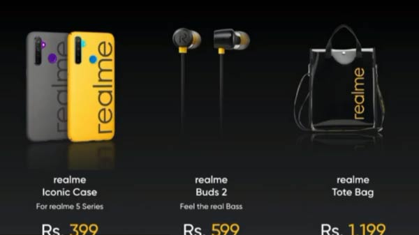 चीनी स्मार्टफोन निर्माता कंपनी रियलमी ने मंगलवार को अपनी रियलमी 5 सीरीज को लॉन्च किया है। इस लॉन्चिंग इवेंट में कंपनी ने दो स्मार्टफोन Realme 5 और Realme 5 Pro के साथ साथ कुछ एक्सेसरीज को भी पेश किया। इनमें Realme Ear buds 2, Realme Toto Bag और Realme 5 सीरीज के लिए आइकॉनिक फोन केस यानि फोन कवर को लॉन्च किया गया है।