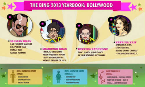 माइक्रोसॉफ्ट सर्च इंजन बिंग ने हाल ही में साल 2013 में सबसे ज्यादा सर्च किए जाने वाले सेलिब्रेटियों की लिस्ट निकाली है जिसमें सलमान खान सबसे ऊपर हैं। रिपोर्ट भारत को मिलाकर 12 दूसरे देशों के सर्च बेस पर निकाली गई है। जिनमें सलमान खान के अलावा शहरुख खान, सचिन तेंदुलकर और कई दूसरे सेलिब्रेटी हैं।