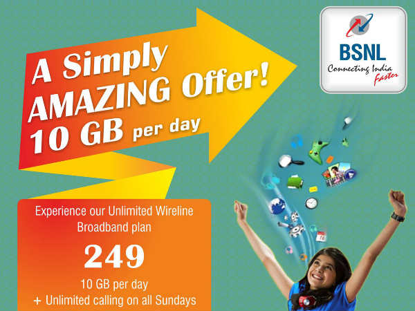 क्या आप अपने ब्रॉडबैंड बिल से परेशान तो बीएसएनएल के नया प्लान आपको पसंद आएगा जिसमें रोज 10 जीबी इंटरनेट का मज़ा लिया जा सकता है। इस प्लान को एक्टीवेट करने के लिए आपको सिर्फ 249 रुपए पे करने होंगे।
