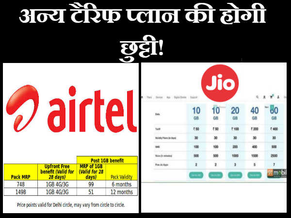 एयरटेल जो कि रिलायंस जियो का सबसे बड़ा प्रतिद्वंदी है अपने उपभोक्ताओं को महीने के लिए अधिकतम 20जीबी डाटा ऑफर करता है, जिसके लिए आपको 1,989 रुपए देने होते हैं। अब साफ़ अनुमान लगाया जा सकता है कि रिलायंस जियो काफी आगे है।